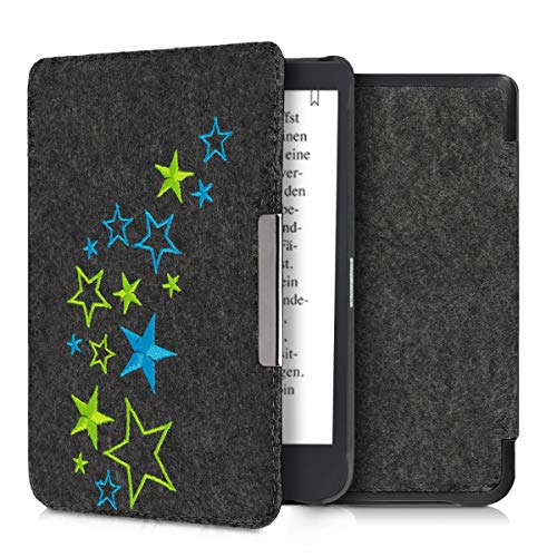 Kwmobile Custodia compatibile con Tolino Shine 3 - Cover a libro per eReader - Protezione in feltro - Flip Case - Stellare verde chiaro/blu/grigio scuro