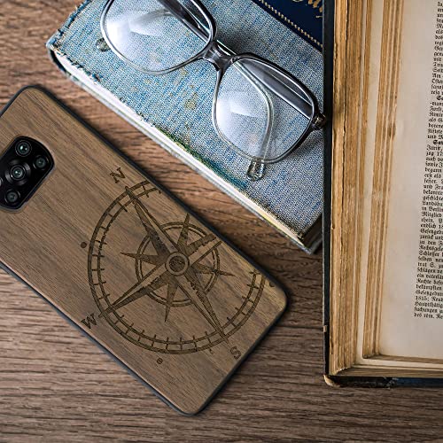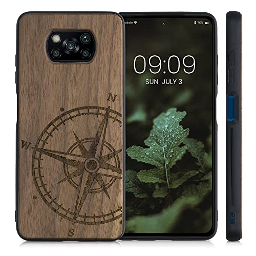 Kwmobile Custodia Compatibile con Xiaomi Poco X3 NFC/Poco X3 Pro Cover - Back Case in Legno con Bumper in Silicone TPU - Bussola vintage marrone scuro
