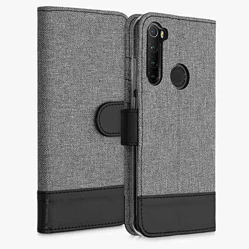 Kwmobile Custodia Compatibile con Xiaomi Redmi Note 8 (2019/2021) Cover Portafoglio - Case Chiusura Magnetica Portacarte Tessuto Similpelle Grigio/Nero
