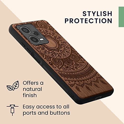 Kwmobile Custodia Compatibile con Xiaomi Redmi Note 12 Pro+ 5G / Note 12 Pro Plus 5G Cover - Back Case in Legno con Bumper in Silicone TPU - Sole indiano marrone scuro