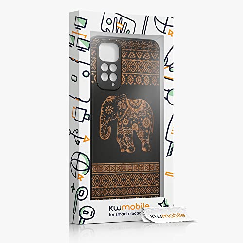 Kwmobile Custodia Compatibile con Xiaomi Redmi Note 11 / Note 11S Cover - Back Case in Legno con Bumper in Silicone TPU - Elefante Tribale marrone chiaro/nero