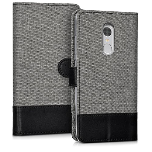 Kwmobile Custodia Compatibile con Xiaomi Redmi Note 4 / Note 4X Cover Portafoglio - Case Chiusura Magnetica Portacarte Tessuto Similpelle Grigio/Nero