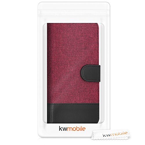 Kwmobile Custodia Compatibile con Xiaomi Redmi 4X Cover Portafoglio - Case Chiusura Magnetica Portacarte Tessuto Similpelle rosso scuro/nero