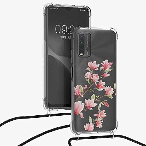 Kwmobile Custodia Compatibile con Xiaomi Redmi 9T Cover - Back Case in Silicone TPU - Protezione Smartphone con Cordino - rosa/bianco/trasparente