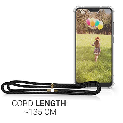 Kwmobile Custodia Compatibile con Xiaomi Redmi Note 6 Pro - Cover a Tracolla con Cordino - Back Case Silicone trasparente/nero con Laccio per Collo