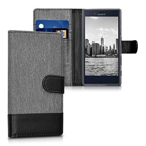 Kwmobile Custodia compatibile con Sony Xperia X Compact - Cover a portafoglio porta carte tessuto simil pelle stand - Case magnetica