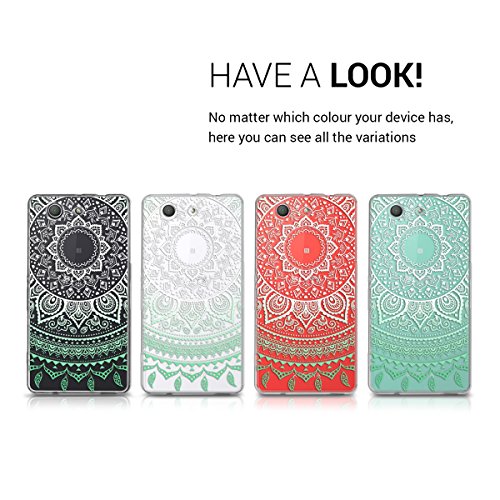 Kwmobile Custodia Compatibile con Sony Xperia Z3 Compact - Cover Silicone TPU - Protezione Back Case - Sole Indiano Menta/Bianco/Trasparente