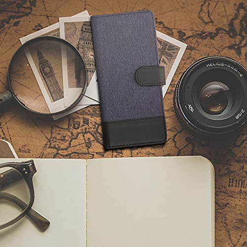 Kwmobile Custodia Compatibile con Sony Xperia 10 III Cover Portafoglio - Case Chiusura Magnetica Portacarte Tessuto Similpelle Blu Scuro/Nero
