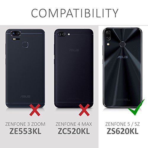 Kwmobile Custodia compatibile con Asus Zenfone 5 / 5Z (ZE620KL/ZS620KL) - Cover a portafoglio porta carte tessuto simil pelle stand - Case magnetica