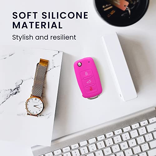CUSTODIA CHIAVI AUTO: la custodia in silicone gommato TPU bianco / fucsia è una cover protettiva per la chiave della macchina. La protezione copri telecomando auto funge da rivestimento anti scivolo e anti graffio.