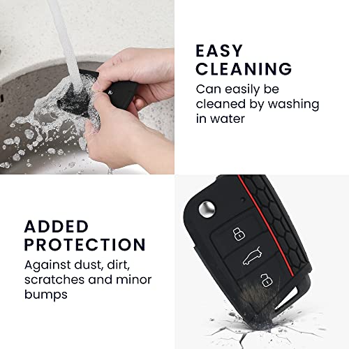 CUSTODIA CHIAVI AUTO: la custodia in silicone gommato TPU rosso / nero è una cover protettiva per la chiave della macchina. La protezione copri telecomando auto funge da rivestimento anti scivolo e anti graffio.