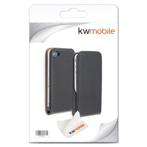Kwmobile Custodia in ecopelle in stile Flip per Apple iPhone 4 / 4S con pratica chiusura magnetica in nero + pellicola protettiva