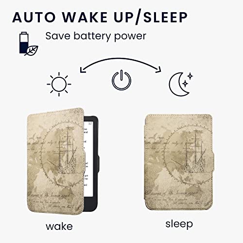 Kwmobile Custodia eReader Compatibile con Kobo Clara 2E Cover - eBook Reader Flip Case - marrone/marrone chiaro - Mappamondo vintage