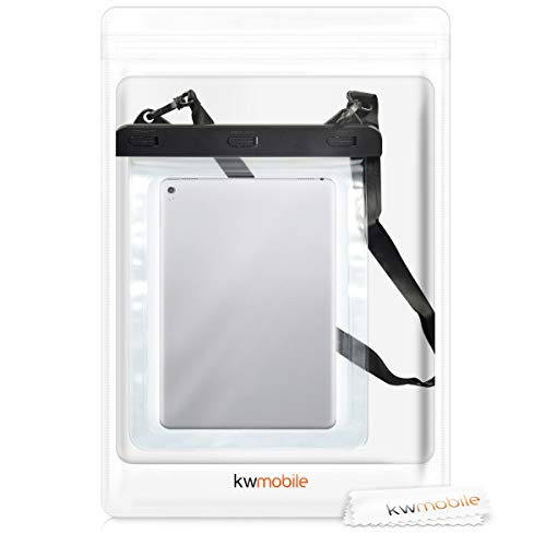 Kwmobile Custodia Impermeabile per Tablet Borsa da Spiaggia - Beach Bag Busta 9.7-10.1" Protezione Acqua Sabbia - Astuccio Waterproof 25,5 x 20,5 cm - Nero/Trasparente
