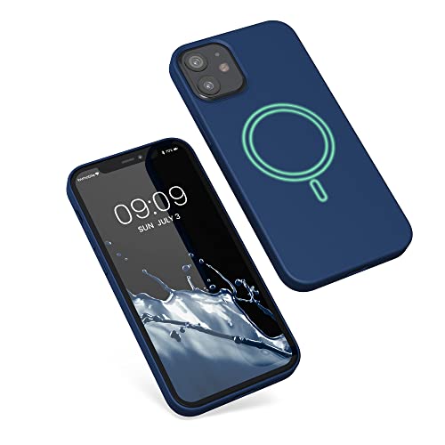 Kwmobile Custodia Magnetica Compatibile con Apple iPhone 12 mini - Compatibile con MagSafe - Cover Silicone TPU Magnete - blu marino