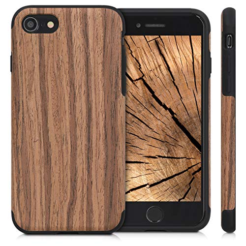 Kwmobile Custodia morbida compatibile con Apple iPhone SE (2022) / iPhone SE (2020) / iPhone 8 / iPhone 7 - in silicone TPU e legno - Back Cover ibrida per cellulare - Venature marrone