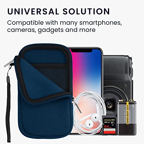 Kwmobile Custodia in Neoprene con Zip per Smartphone L - 6,5" - Astuccio Portacellulare a Sacchetto con Cerniera - Borsa in blu marino