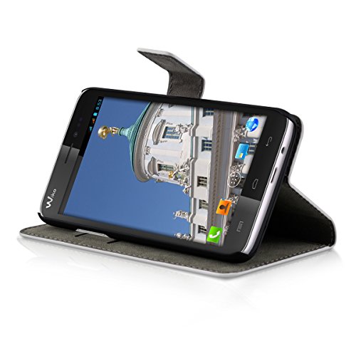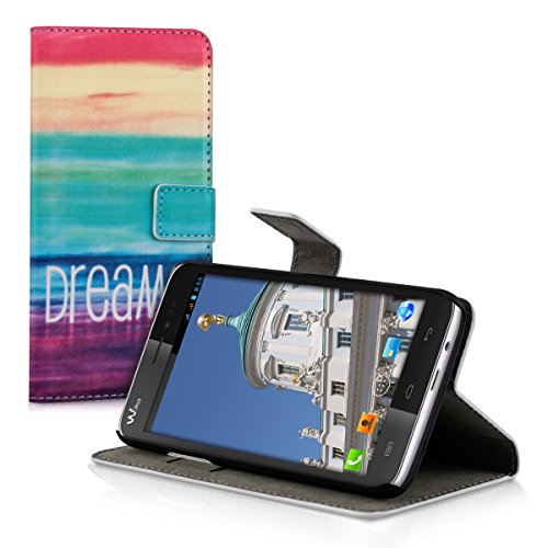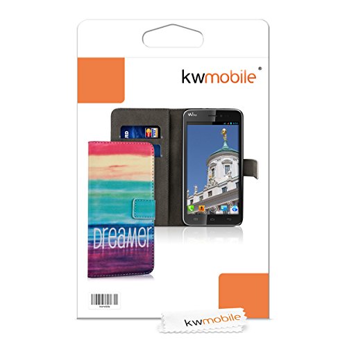 Kwmobile Custodia portafoglio per Wiko Lenny - Cover a libro in simil pelle Design Dreamer Flip Case con porta carte funzione appoggio multicolore blu rosso