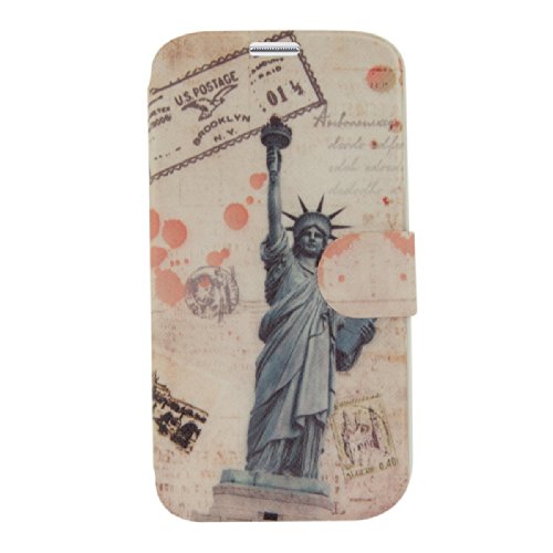 Kwmobile Custodia portafoglio per Samsung Galaxy S4 - Cover a libro in simil pelle Design Statua Libertá posta Flip Case con porta carte funzione appoggio blu bianco