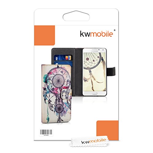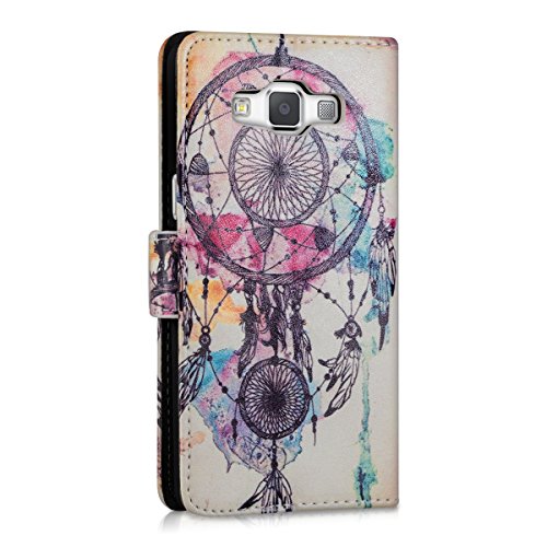 Kwmobile Custodia portafoglio per Samsung Galaxy A5 (2015) - Cover a libro in simil pelle Design acchiappasogni macchie Flip Case con porta carte funzione appoggio multicolore blu bianco