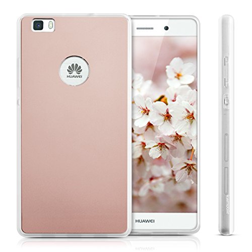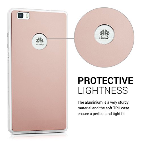 Kwmobile Custodia protettiva rigida compatibile con Huawei P8 Lite (2015) - Retro in alluminio e cornice bumper in silicone TPU - oro rosa
