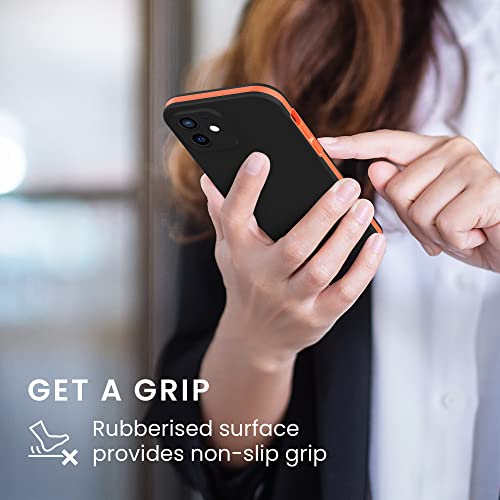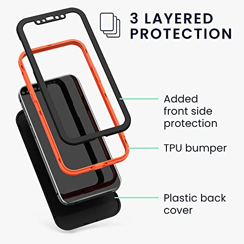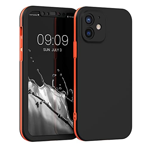 Kwmobile Custodia Rigida Compatibile con Apple iPhone 12 - Cover Fronte Retro - Protezione Posteriore Rigida con Bumper nero/arancione