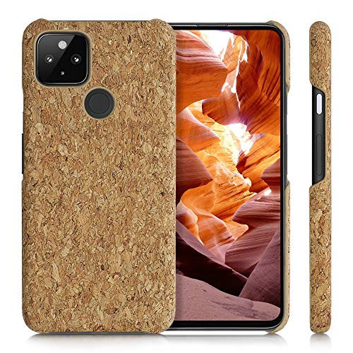 Kwmobile Custodia Rivestimento Sughero Compatibile con Google Pixel 4a 5G Cover - Cover Copertura Sughero - Case Smartphone marrone chiaro