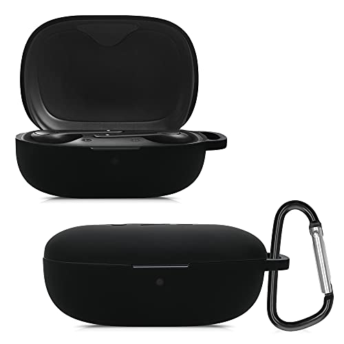 Kwmobile Custodia Silicone Cuffie Compatibile con Anker Soundcore Life P2 Cover - Custodia Porta Auricolari con Moschettone - Case nero