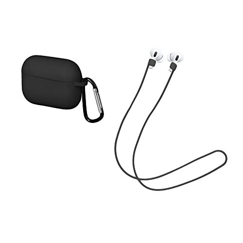 Kwmobile Set 2in1 Custodia Silicone Cuffie in Ear Laccio Anti Smarrimento per Auricolari Compatibile con Apple AirPods PRO - Nero/Nero