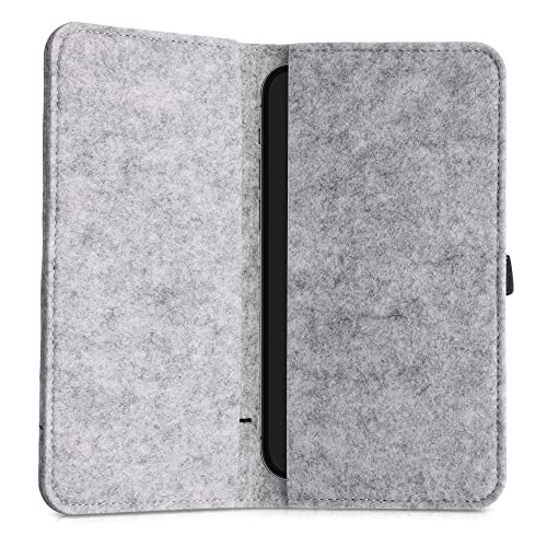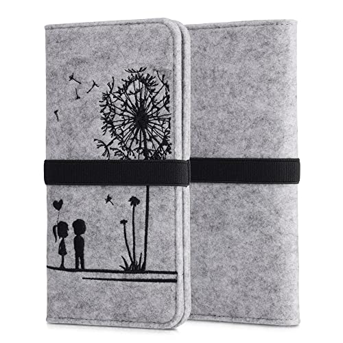 Kwmobile Custodia per smartphone in feltro - Full Body Case con banda elastica - Astuccio universale porta cellulare 17,2 x 8 cm - Amore nero/grigio chiaro
