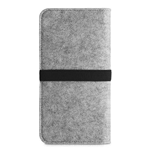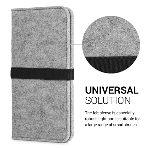 Kwmobile Custodia per smartphone in feltro - Full Body Case con banda elastica - Astuccio universale porta cellulare 17,2 x 8 cm - grigio chiaro/nero