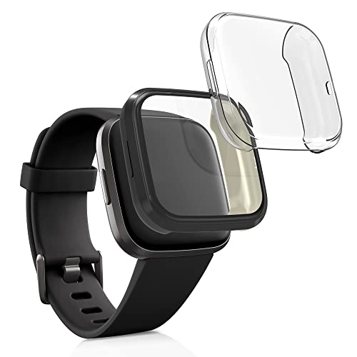Kwmobile Set 2X Custodia Smartwatch Compatibile con Fitbit Versa 2 Cover - Case Silicone Protezione Orologio Fitness Nero/Trasparente