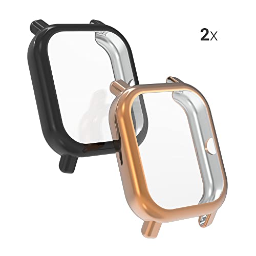 Kwmobile Set 2x Custodia Smartwatch Compatibile con Huami Amazfit Bip/Bip Lite Cover - Case Silicone Protezione Orologio Fitness nero/oro rosa