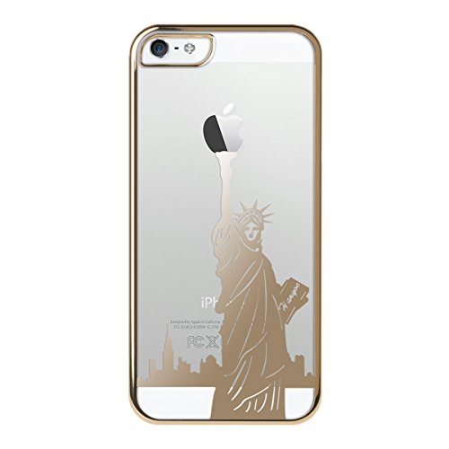 Kwmobile, Custodia trasparente in plastica rigida per cellulare per Apple iPhone SE / 5 / 5S, Design Statua della Libertá, Oro trasparente