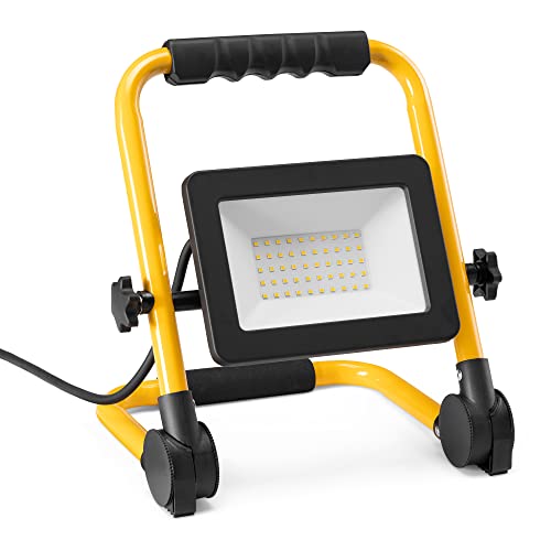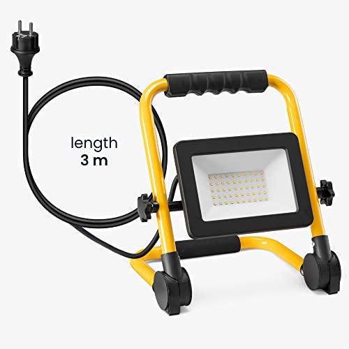 DIREZIONABILE: la lampada portatile è utile per i lavori all'esterno, in officina, in giardino o garage. Il faro LED si presta ad uso interno ed esterno. Il supporto pieghevole è orientabile in diverse direzioni e illumina ad ampio raggio.