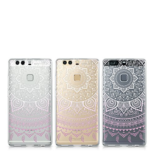 Kwmobile Huawei P9 Plus Cover - Custodia in Silicone TPU per Huawei P9 Plus - Backcover Cellulare Rosa Bianco Trasparente