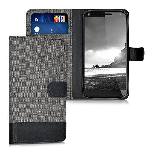Kwmobile Motorola Moto X Force Custodia Portafoglio - Cover Porta Carte Tessuto Simil Pelle Stand per Motorola Moto X Force - Case Magnetica