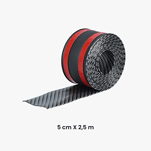 Kwmobile Pellicola Protettiva Bordo Portiera Automobile - Adesivo Auto Universale Coprigraffi - Pellicola Autoadesiva Nero Effetto Carbonio