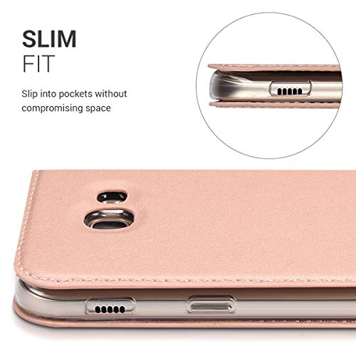Raffinata effetto pelle: la custodia portatile Style pieghevole di ricarica con interno in silicone TPU plastica e similpelle resistente rivestimento esterno protegge il tuo Samsung Galaxy A5 (2017) ideale da sporco e graffi.