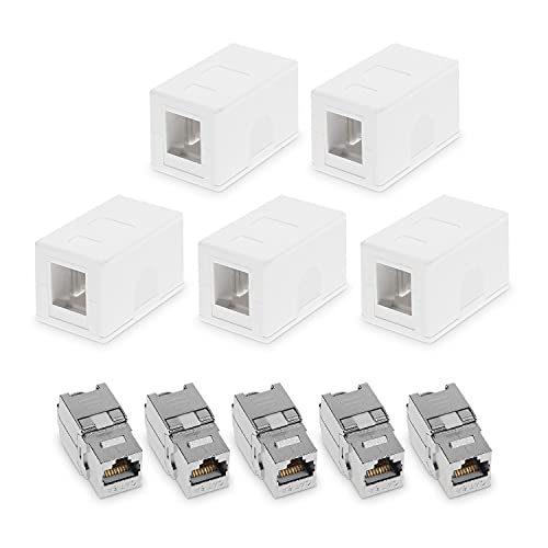 Kwmobile 5X Scatole Cavi Ethernet - Modulo Keystone RJ45 Integrato per Presa di Rete Cat6A 10Gbit LAN / 500MHz - Ingresso Femmina Singolo - Bianco