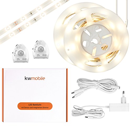 Kwmobile 2x Striscia led con sensore movimento - Luci notturne lampada led dimmerabile da letto - Illuminazione notturna interni cameretta 120cm - bianco