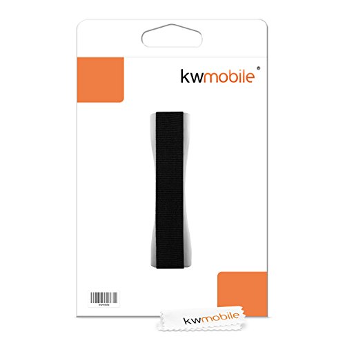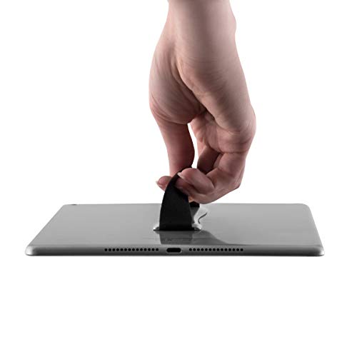 Kwmobile Supporto Dita per Tablet - Sostegno Adesivo Fascetta Elastica - Impugnatura Mano Universale Compatibile con iPad Galaxy-Tab Porta Tablet argento/nero