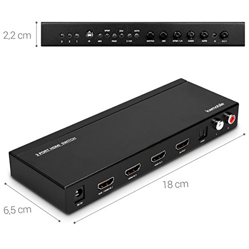 Kwmobile HDMI Switch 4k Full HD - Splitter 3x1 ARC con audio extractor e telecomando - commutatore 3D Ready EDID 4k@30Hz ARC SPDIF Toslink TV stereo