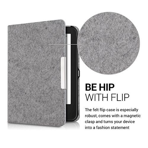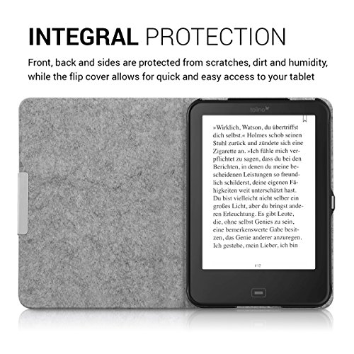 Kwmobile Tolino Shine 2 HD Custodia - Flip Case per Tolino Shine 2 HD Cover a libro per eReader - Protezione in feltro
