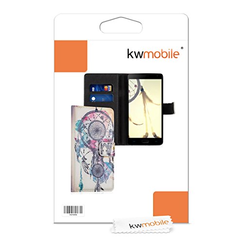Kwmobile Wallet case Custodia a portafoglio per OnePlus 2 - Custodia flip cover in Design acchiappasogni macchie con scompartimento tessere e funzione supporto in multicolore blu bianco
