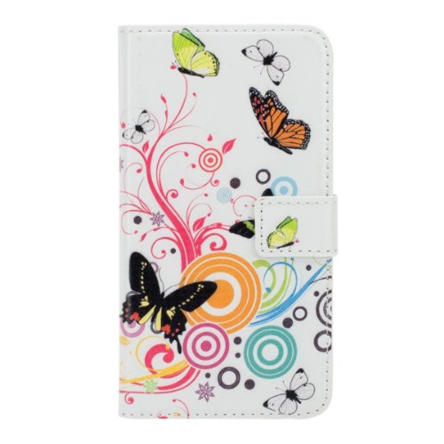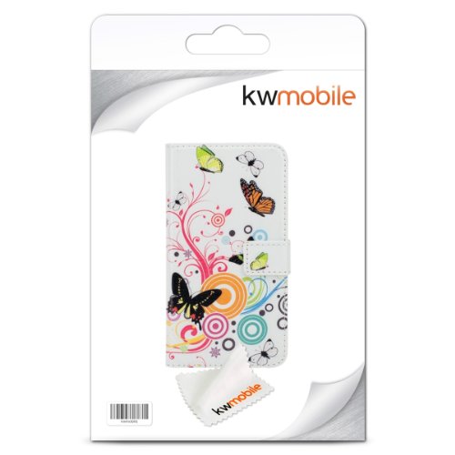 Kwmobile Wallet case Custodia a portafoglio per Samsung Galaxy S5 / S5 Neo / S5 LTE+ / S5 Duos - Custodia flip cover in Design farfalle hippy con scompartimento tessere e funzione supporto in multicolore fucsia bianco