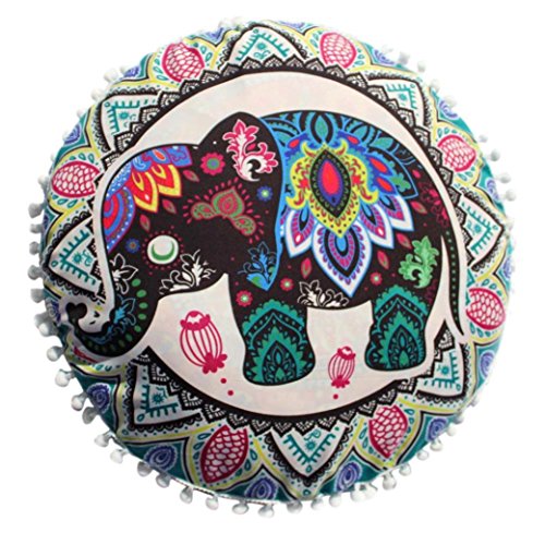 Kword Cuscini Caso, Indiano Mandala Rotondo Bohemien Casa Cuscino Cuscini Divano Elefante Stampa Nappa Cuscini Copertina (A)