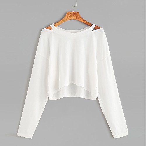 Kword Moda Donna Manica Lunga off Spalla Felpa Casual Tops Fori Camicetta Tumblr (S, Bianco)