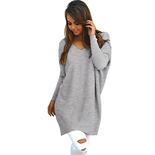 Kword Donna V-Collo Cotone Manica Lunga Maglione Maglioni Casual Coat Camicetta (S-XL) (L, Grigio)