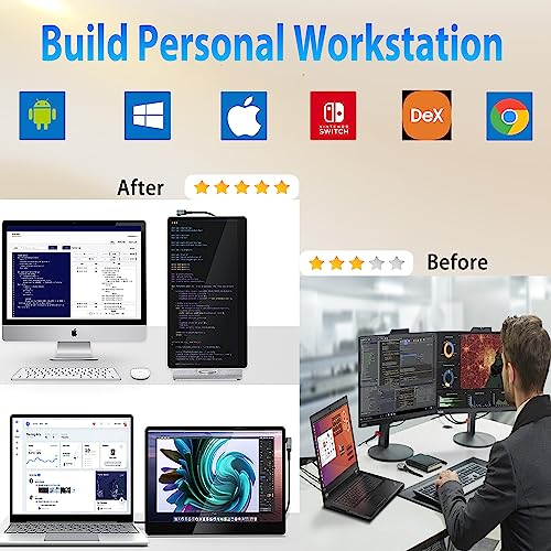 【AMPIA COMPATIBILITA'】( Prima di tutto, assicurati che il tuo laptop/dispositivo dotato di un'interfaccia TYPE-C completa possa raggiungere una connessione a filo singolo.) Kwumsy KX 15.6''Monitor touchscreen portatile è progettato come monitor indipendente o come schermo espanso,compatibile con la maggior parte dei Mac/Chrome/Windows/Android/Switch, Supporta la maggior parte delle console Desktop/Laptop/PC/Set-Top Box/giochi sul mercato con la sua porta HDMI.